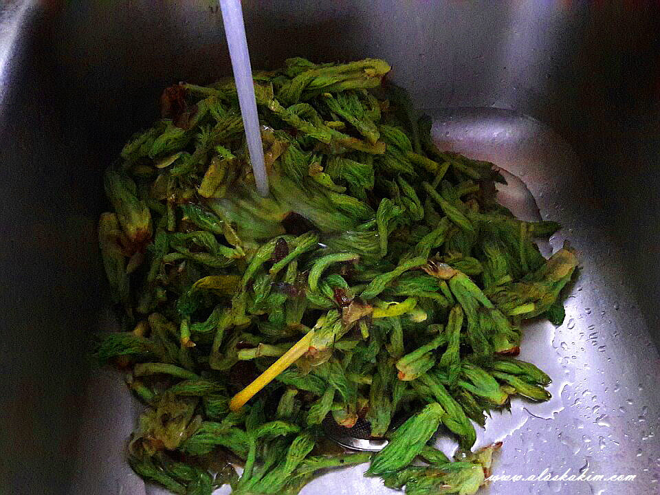 끓는 물에 살짝 데쳐야 합니다.