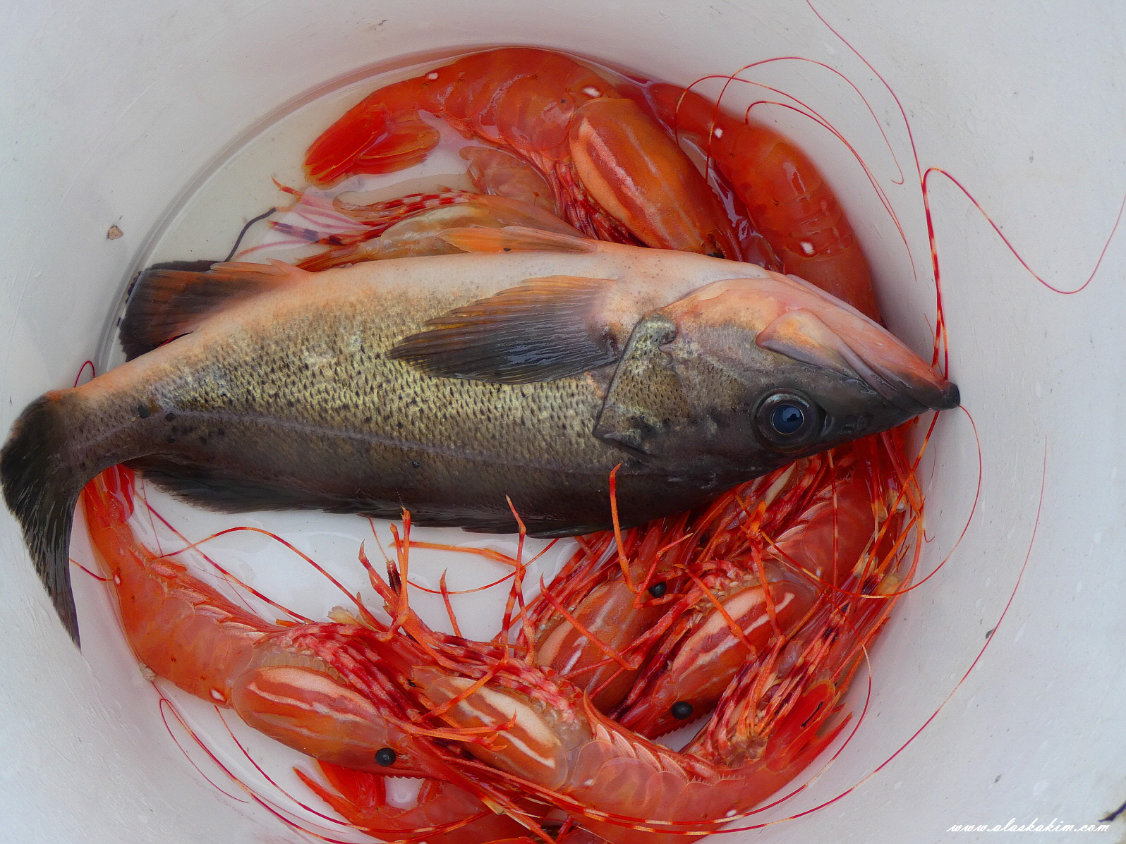 오늘은 문어와 우럭 한 마리 새우 9마리를 잡고 부랴부랴 노를 저어