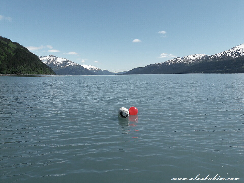 지금 연어 낚시철이라 다들 분주하기만 한데, 저는 새우망을 건져 올리기