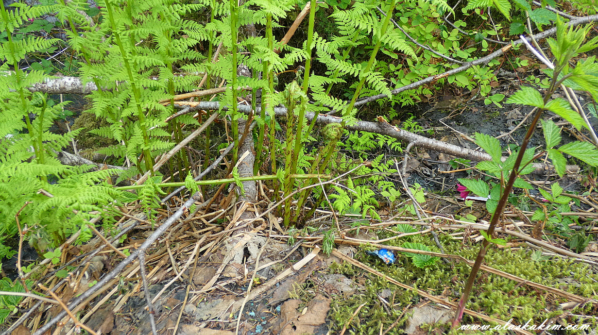 야영지 주변에 많은 야생 샐몬 베리가 자라고 있습니다.