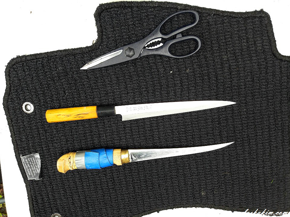 회칼 두 개와 가위를 준비합니다.