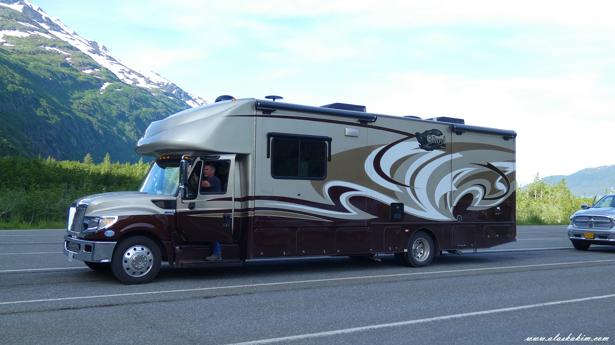 알래스카를 여행중인 RV 차량.