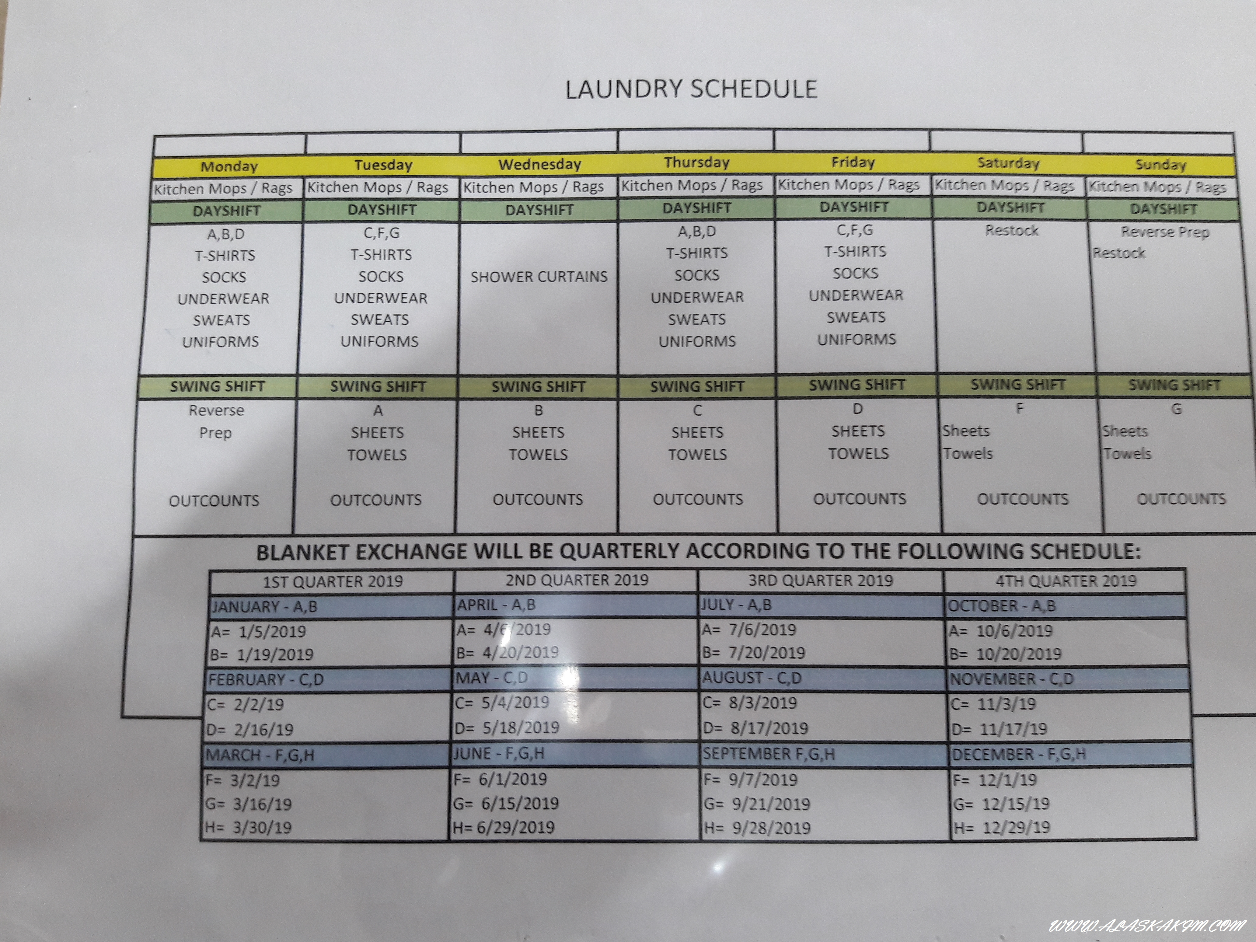 나는 c3 동에 수용되어 매일 화요일과 금요일 아침에 세탁물을 내놓으면