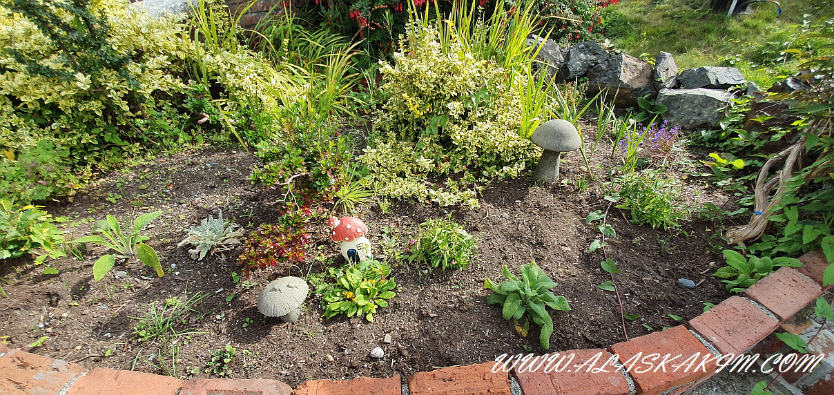 정원에 모형 벗서이 있는데 가운데 껀 독버섯 모양이네요.