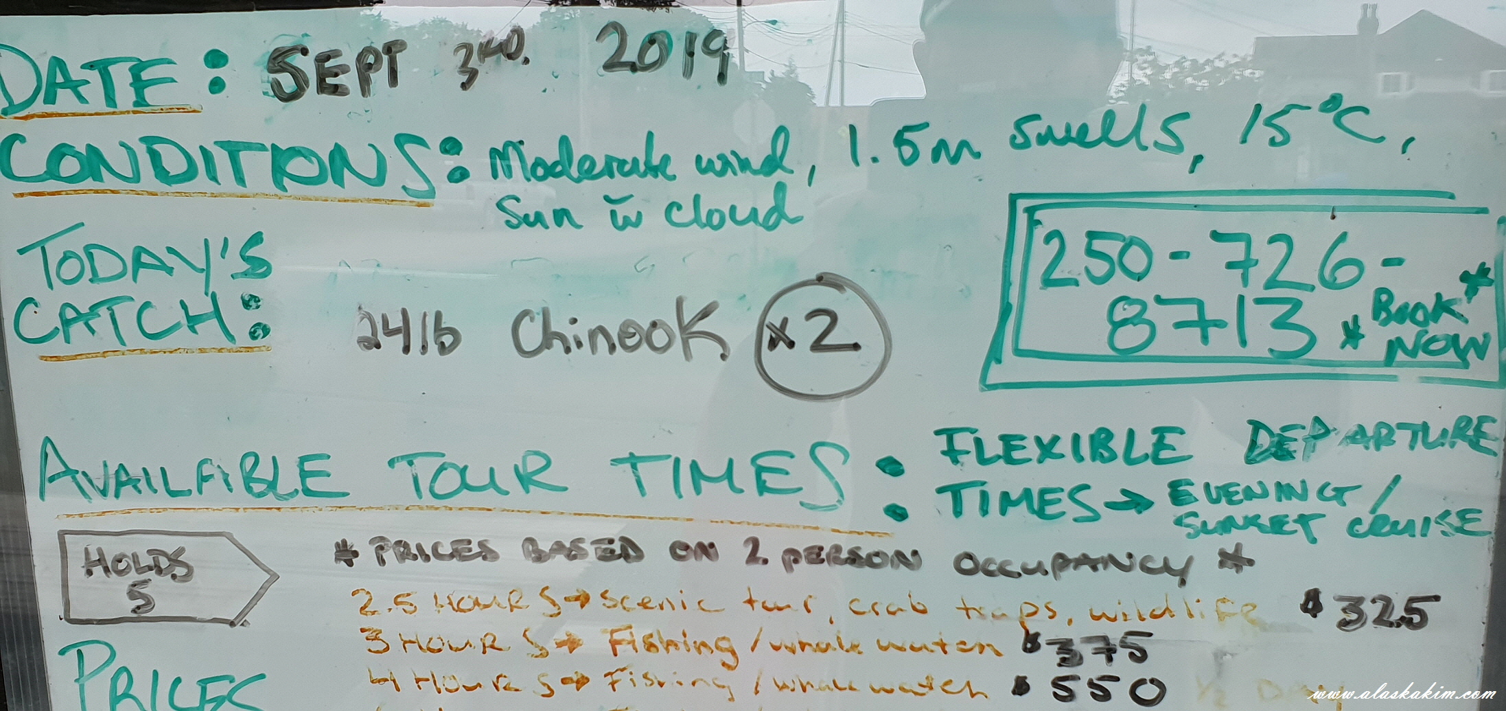 4시간짜리 낚시 투어가 550불이네요.