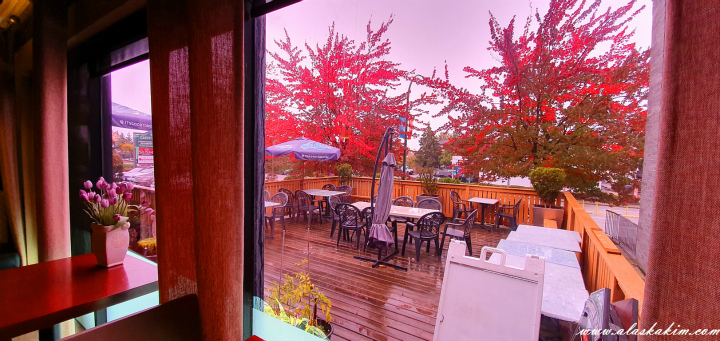 안에서 커피 한잔을 하면서 비 내리는 가을 분위기를 마음껏