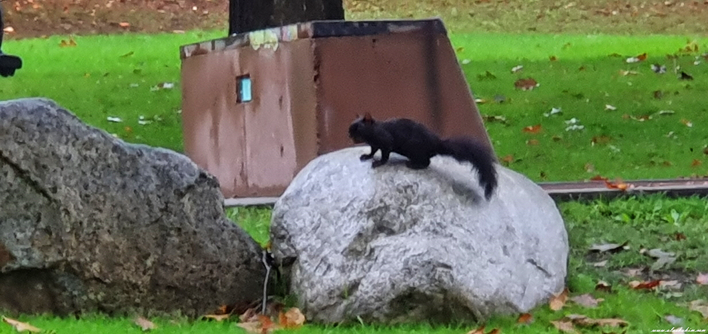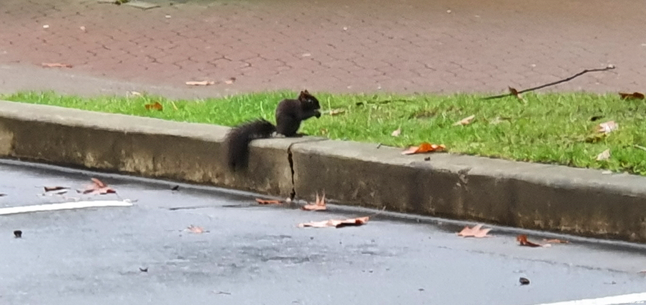 가을비가 내리는 날, 작은 공원에 들렀는데 청설모 한 마리가