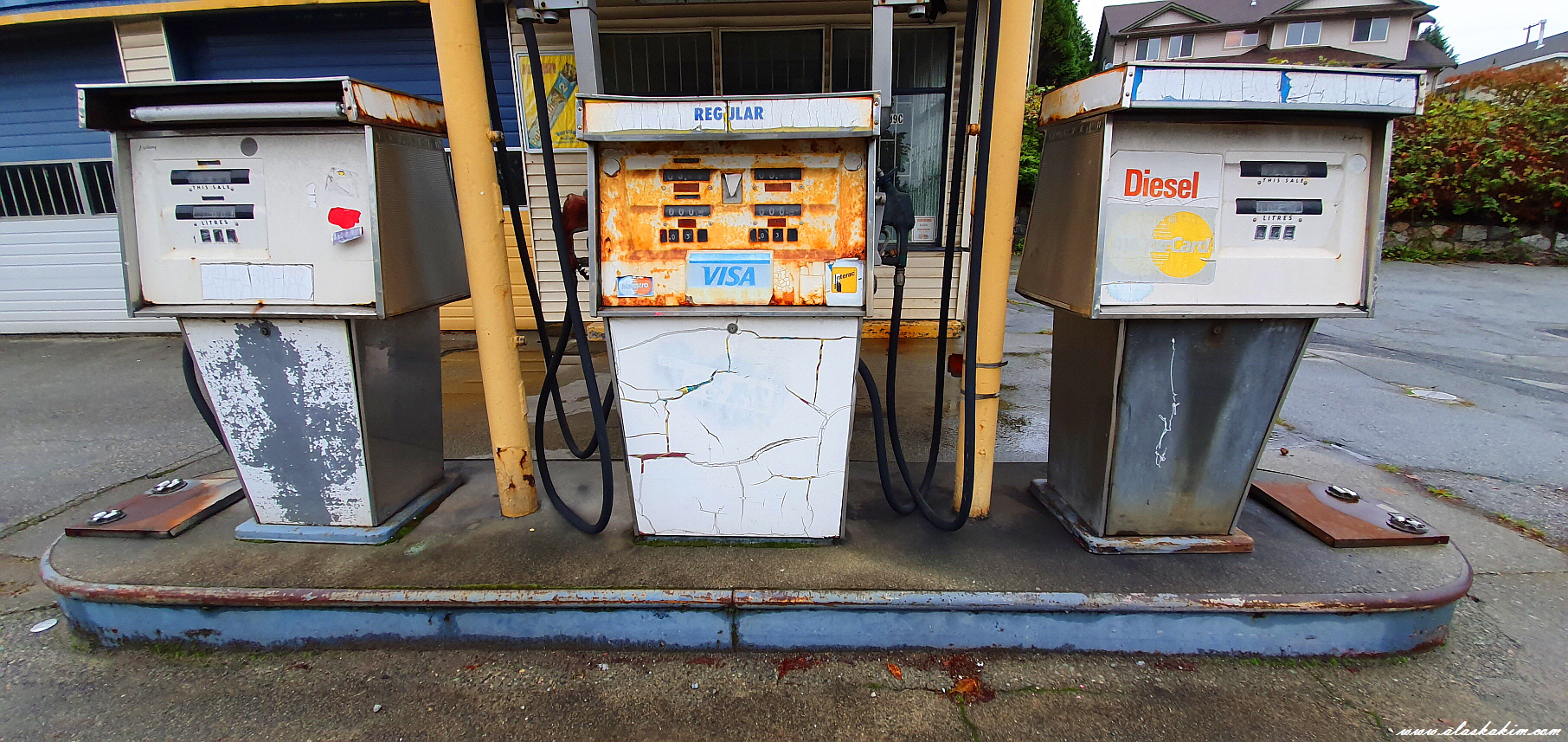 이제는 흉물스럽게 변해버린 주유기들이 오랜 세월의