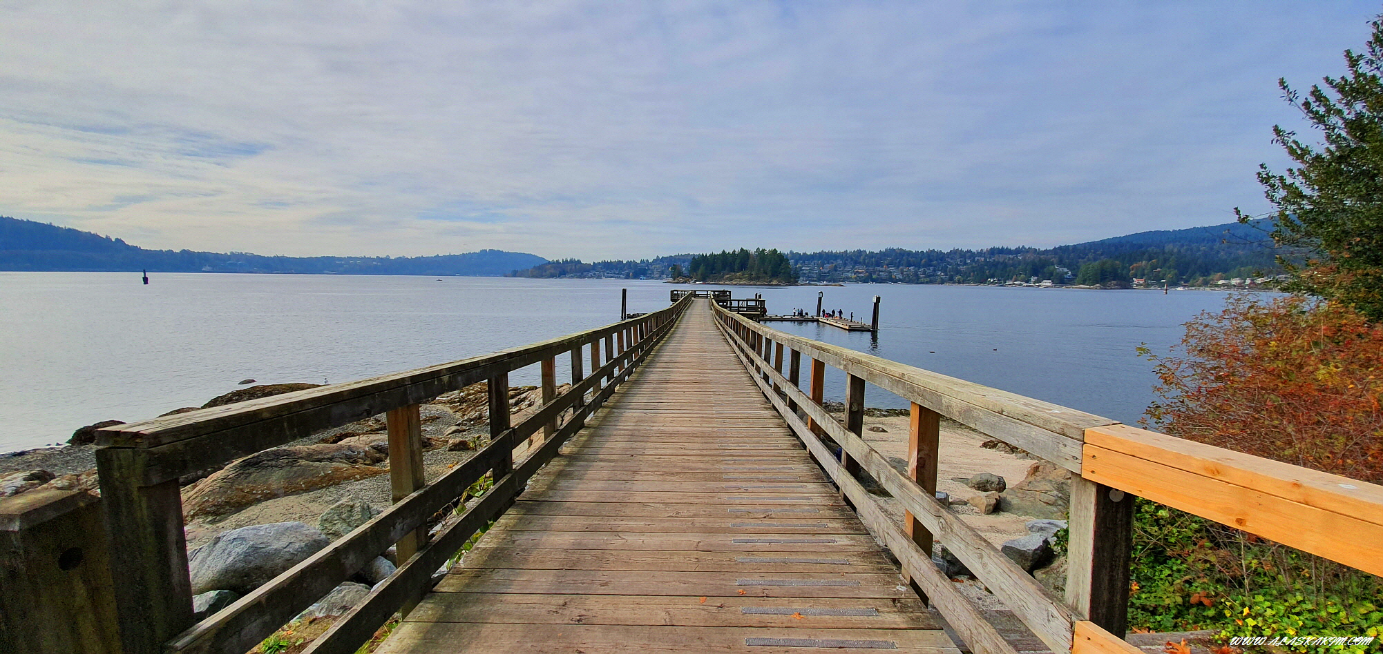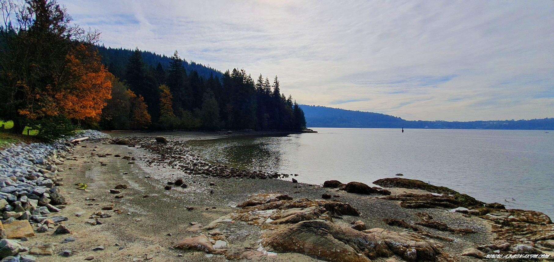 낙엽이 쌓여 더한층 운치를 더해주는 바닷가 공원을