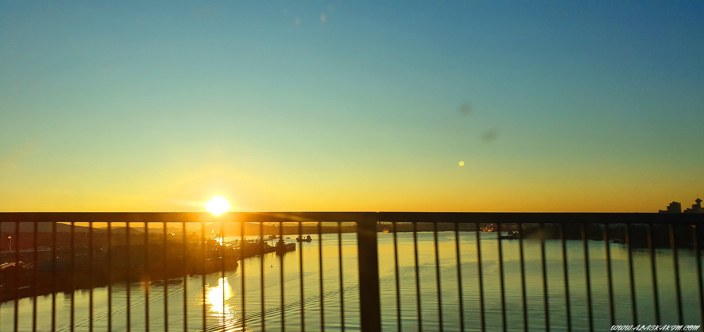 다리를 건너는데 해가 뜨는 일출이 시작되고 있었습니다.