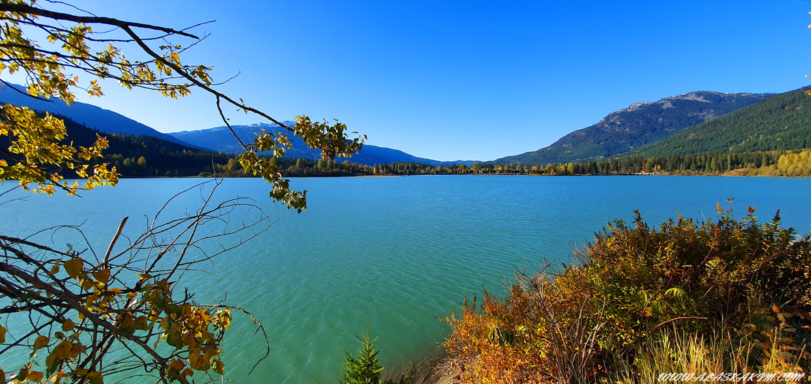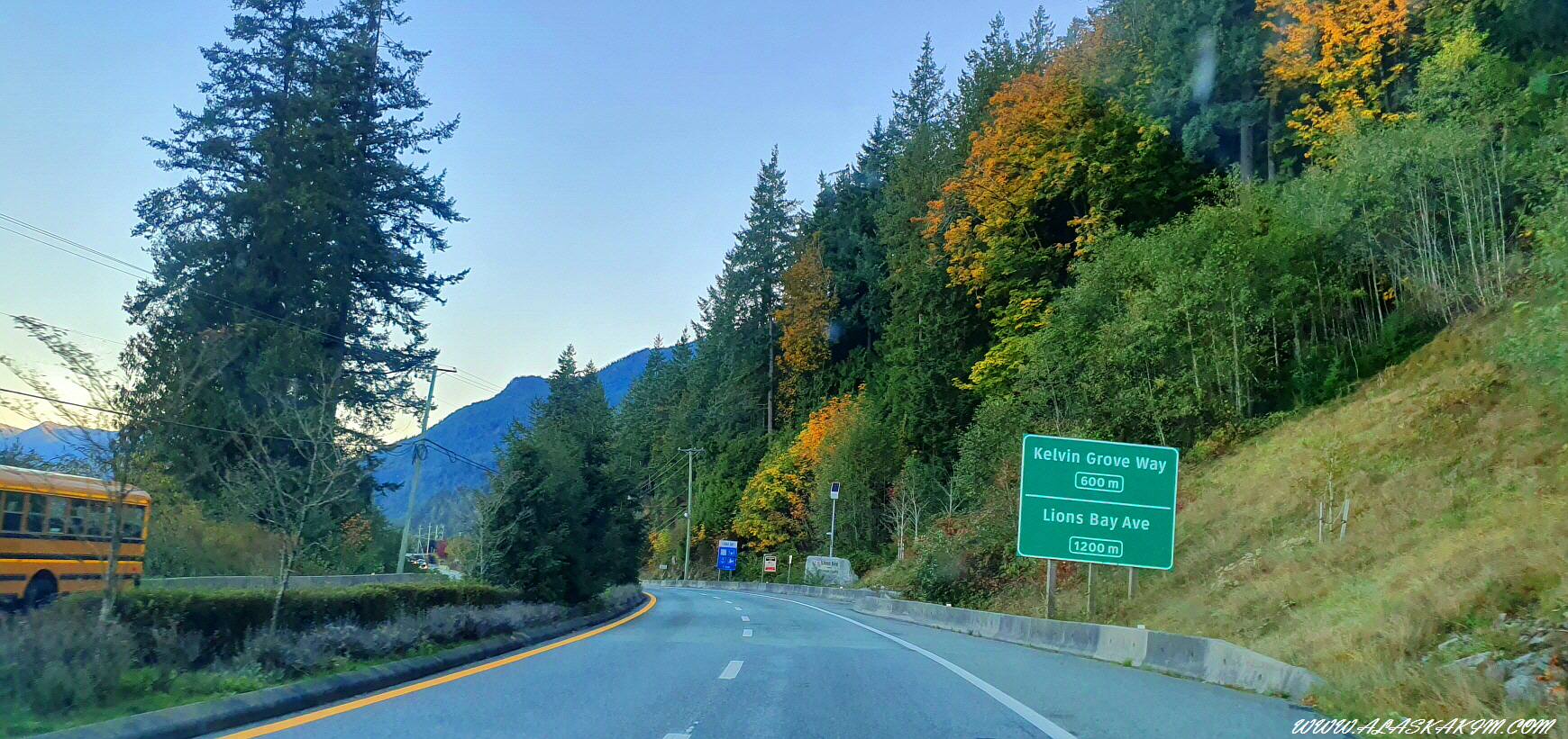 왼쪽에는 푸른 바다가 한없이 펼쳐지고, 왼쪽에는 단풍이 한창입니다.