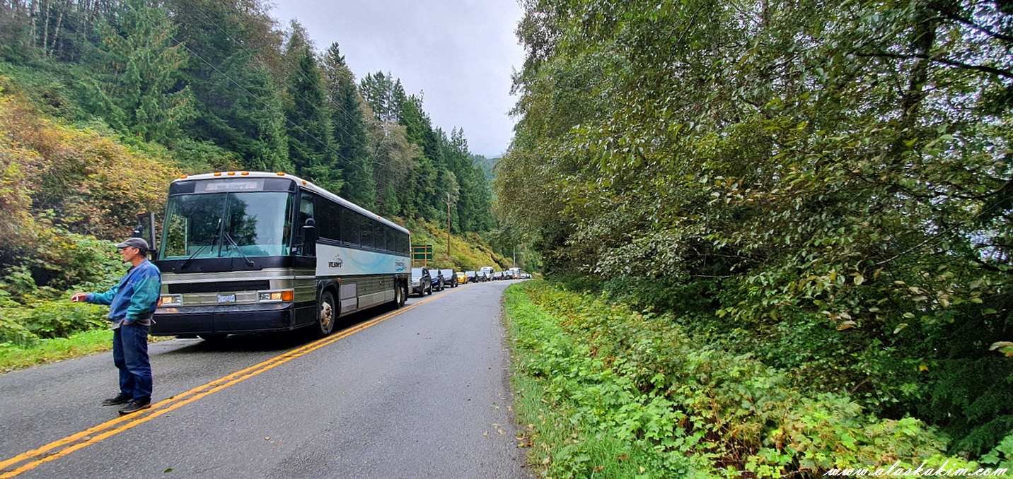 버스를 타고 달리다가 30분 이상을 정체해 차에서 잠시 내려