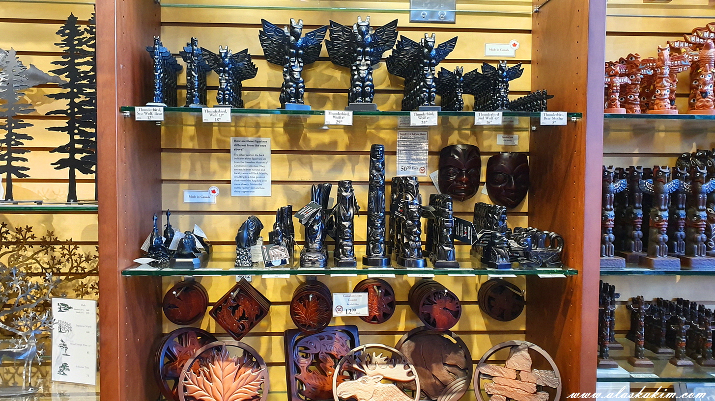 토템폴 미니어처와 수컷 무스 기념품도 보이네요.