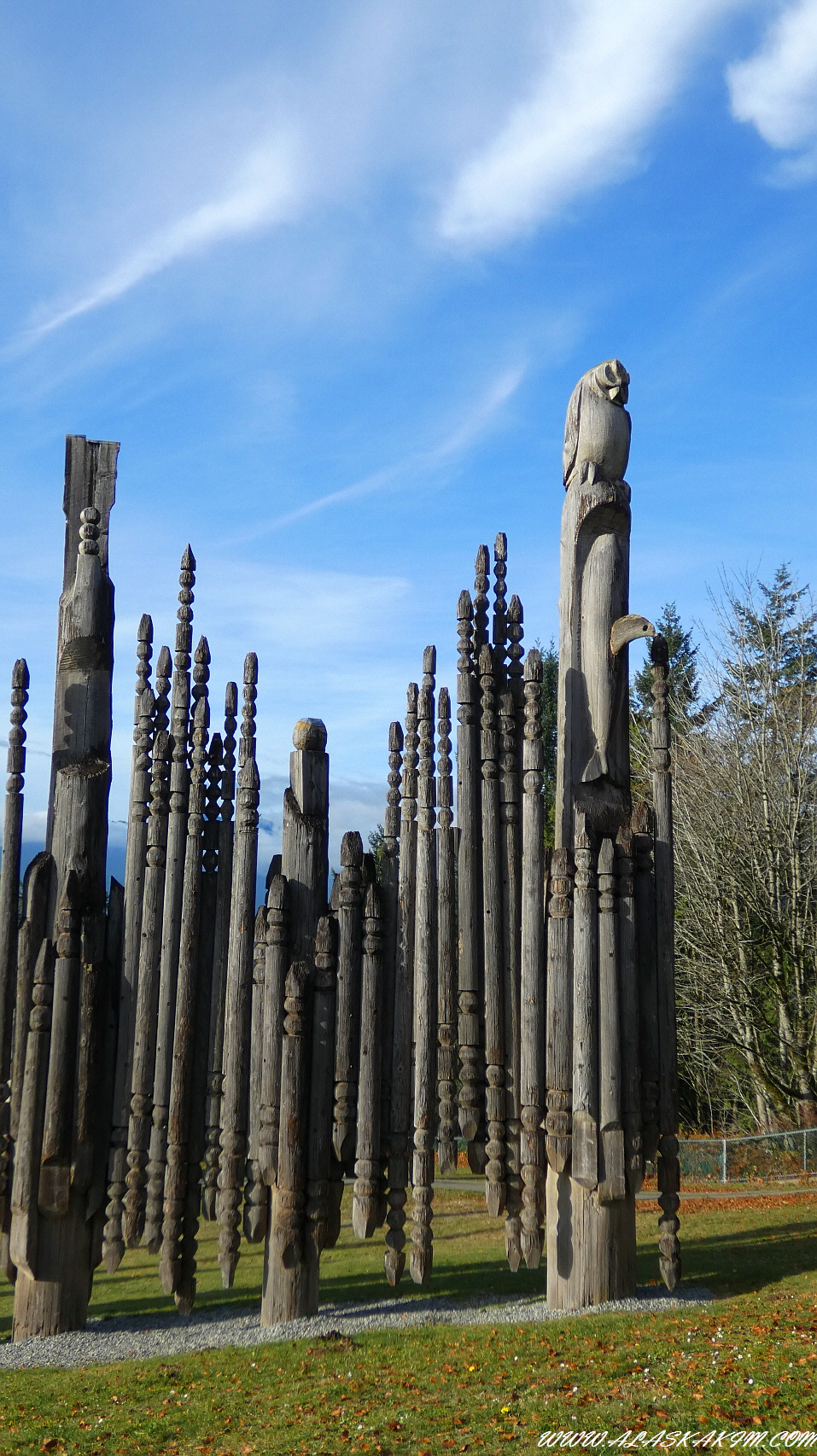 여기 토템폴들은 단순하면서도 다양한 모습을
