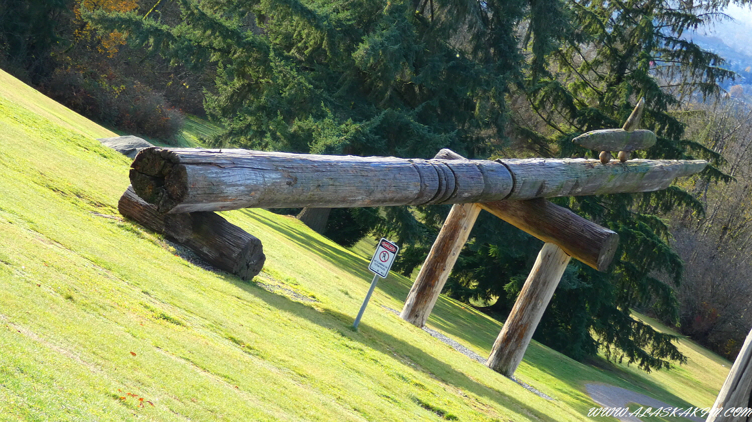 이 토템폴은 아주 특이하게 생겼습니다.