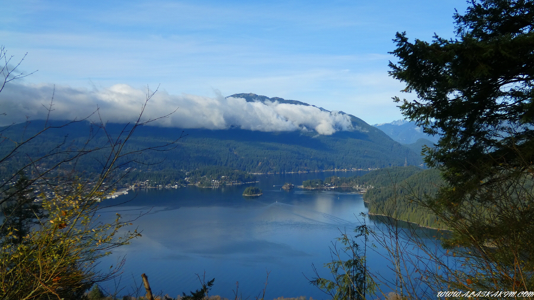 전망대에서 내려다본, 바다와 무인도.