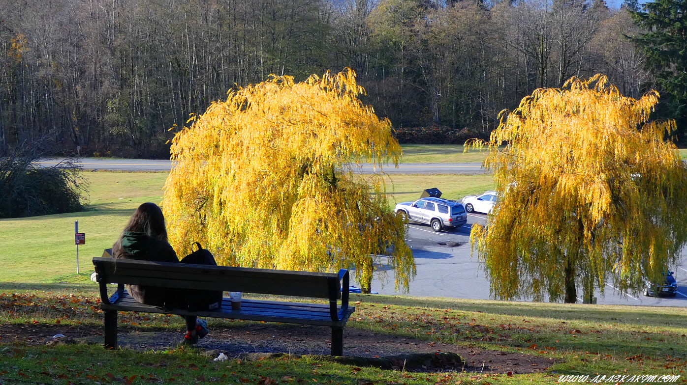 이 수양버드나무가 공원 한 복판에 있어 운치를