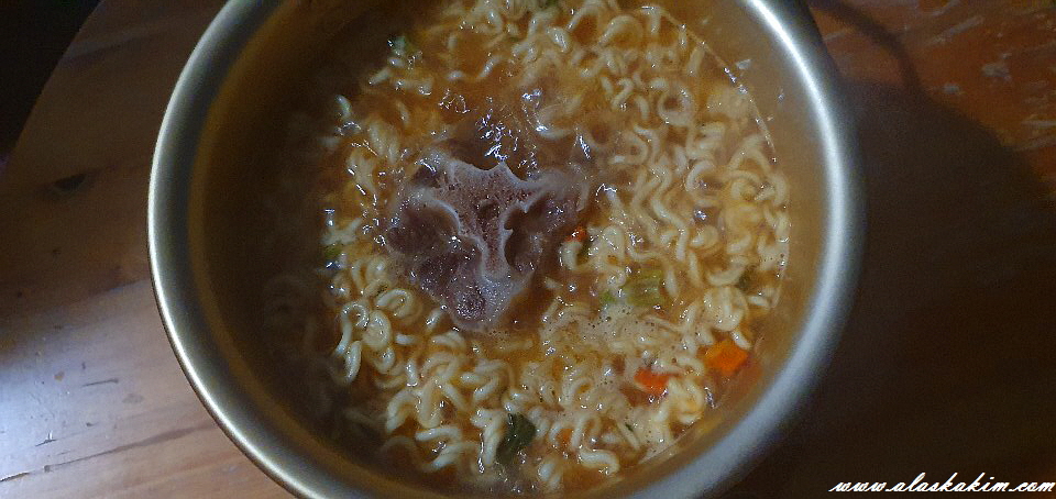 꼬리라면을 먹었더니 , 속이 든든하네요.