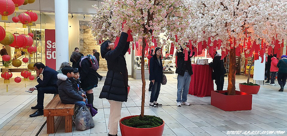 쇼핑몰에 들어서자 소원 나무가 몰 중앙에 설치가