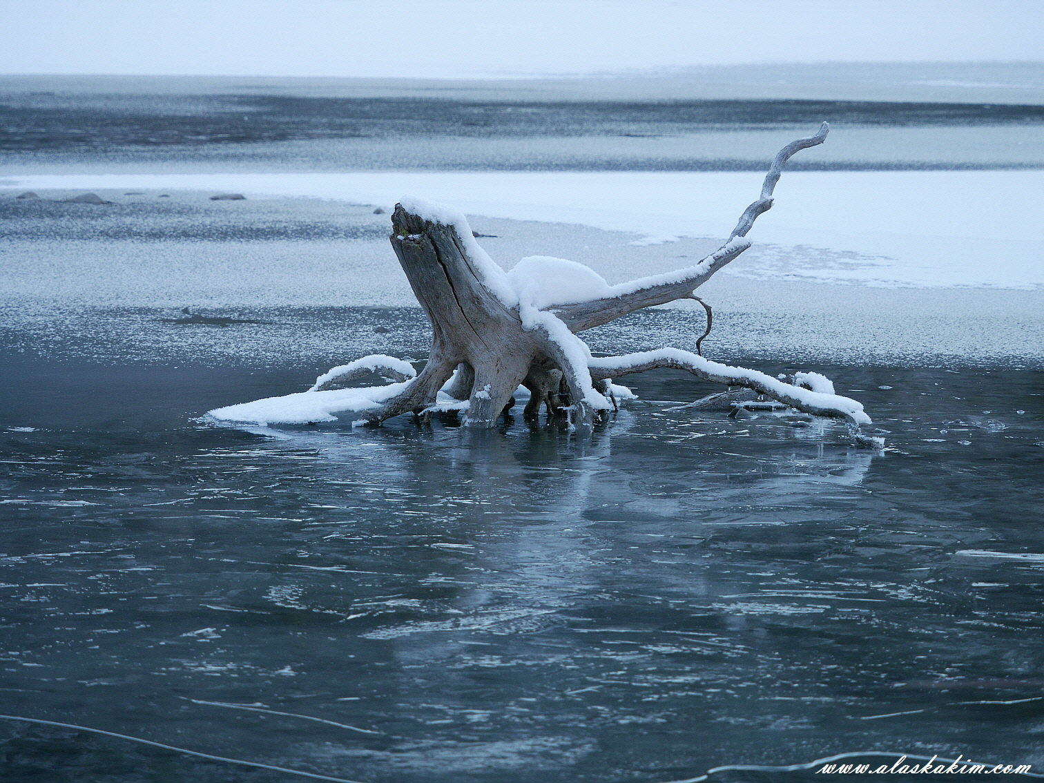 꽁꽁 얼어버린 호수에는 마치, 긴 꼬리 도마뱀 형상의