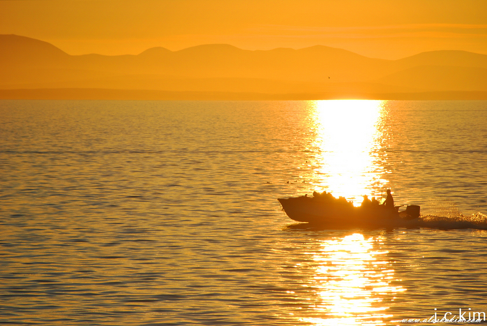 북극 베링해에서 고기를 잡는 에스키모 가족입니다.