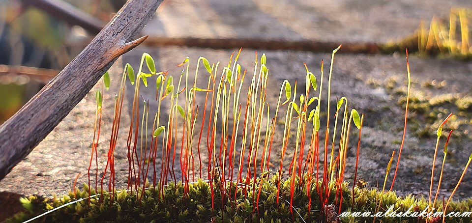 빨간 벽돌로 지어진 담장에 난, 실처럼 가는 콩나물 같은 새싹입니다.
