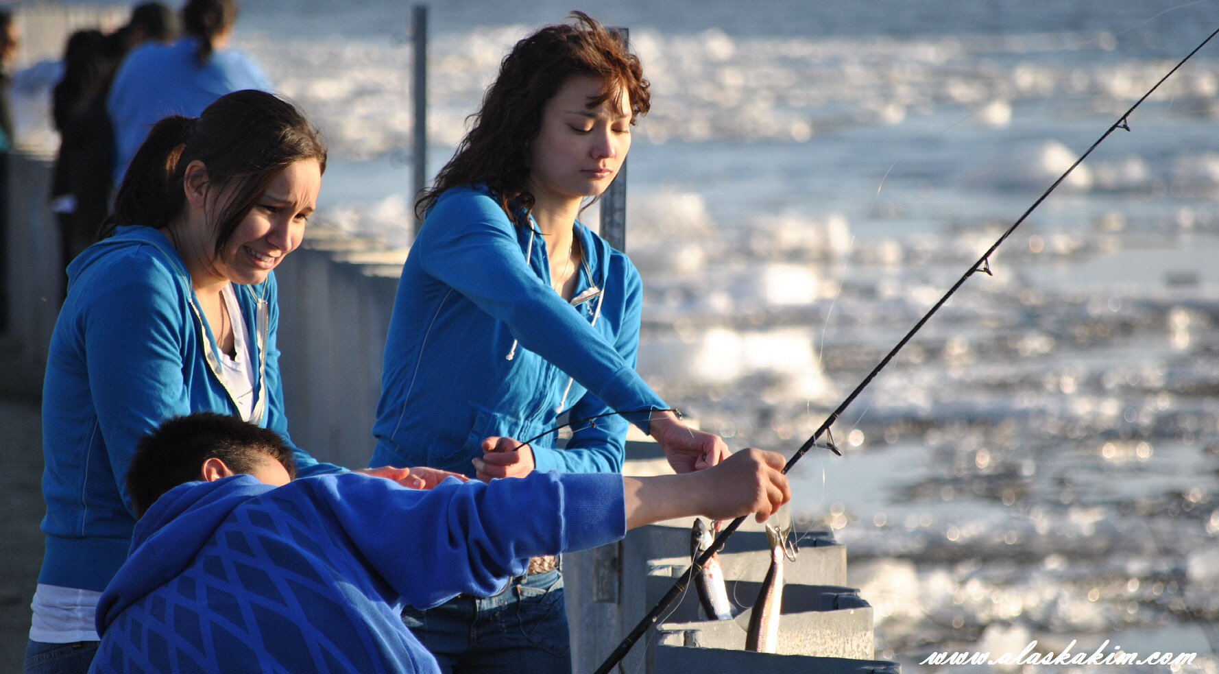 북극 베링해 원주민 마을에서 청어 잡는 풍경을
