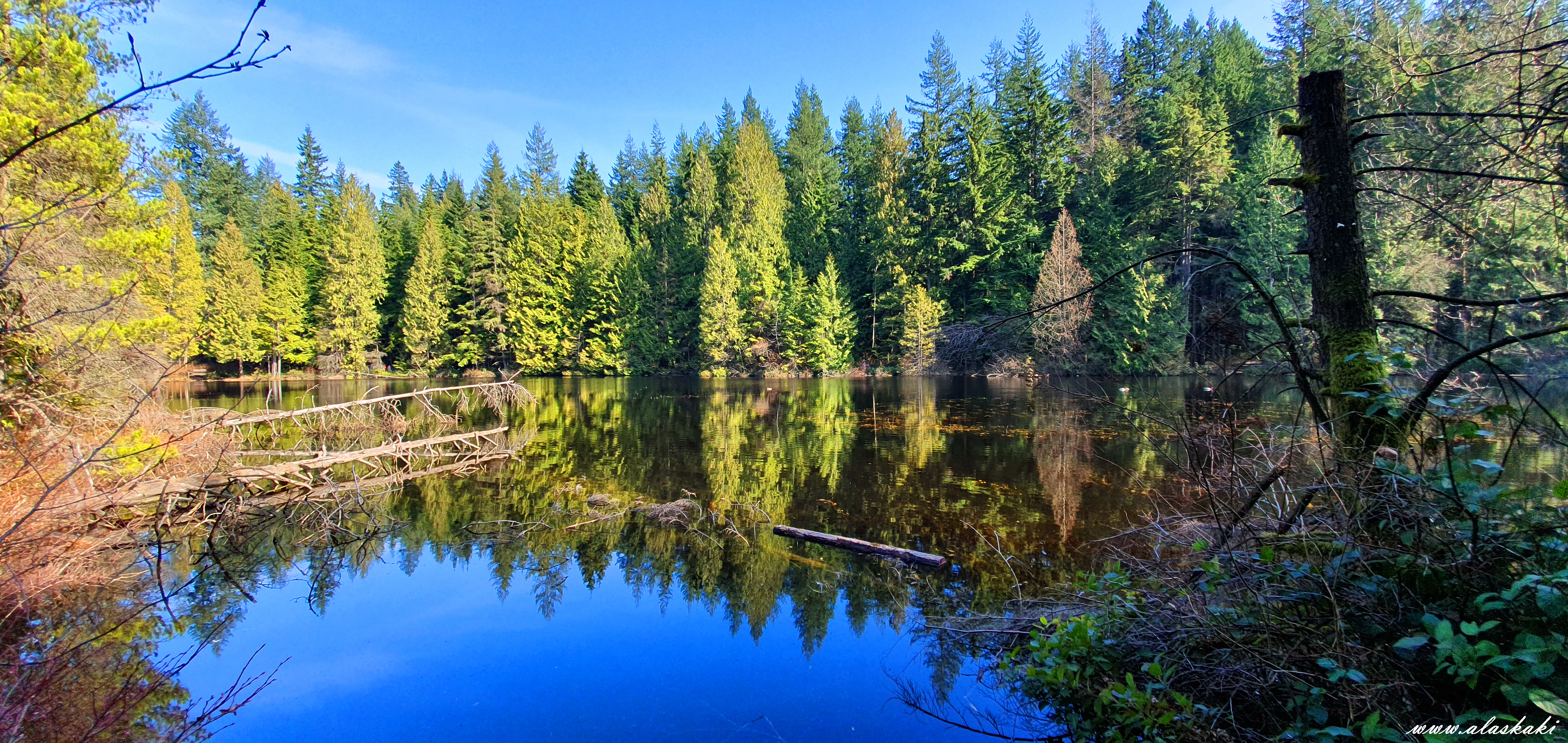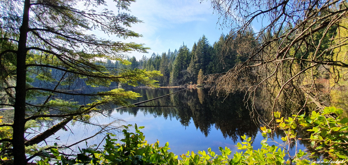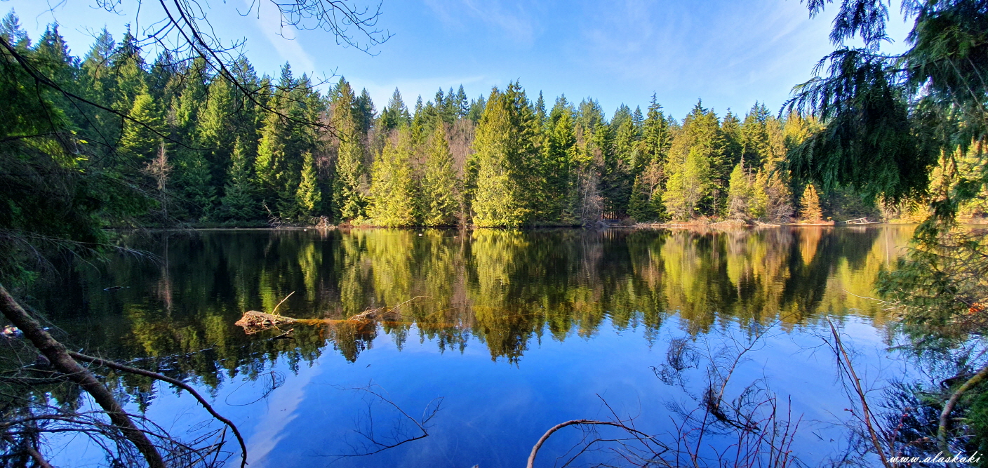 수많은 삼나무와 작지만 아름답고 고요한 호수를