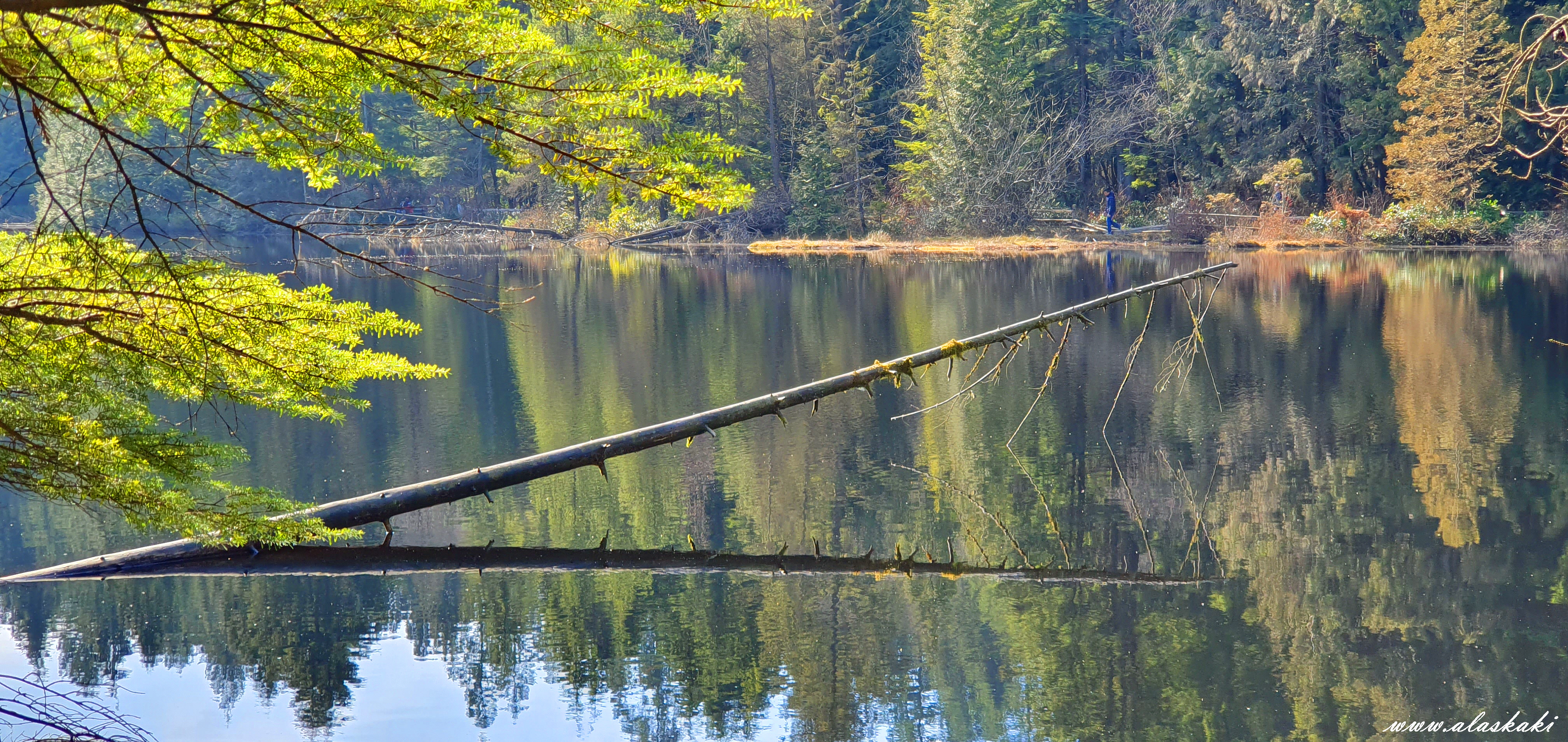 호수에 잠긴 나무 위를 올라가 볼까 하다가