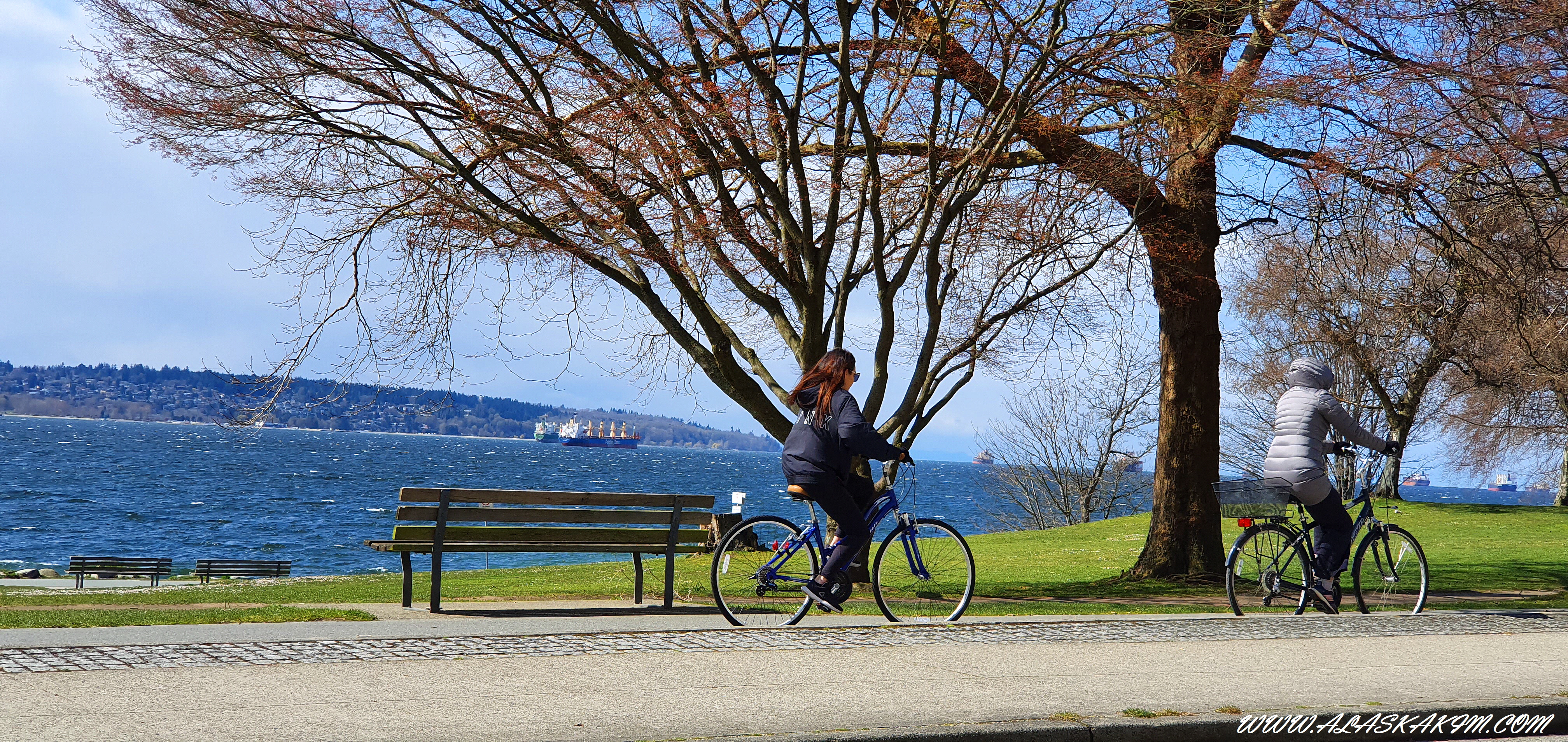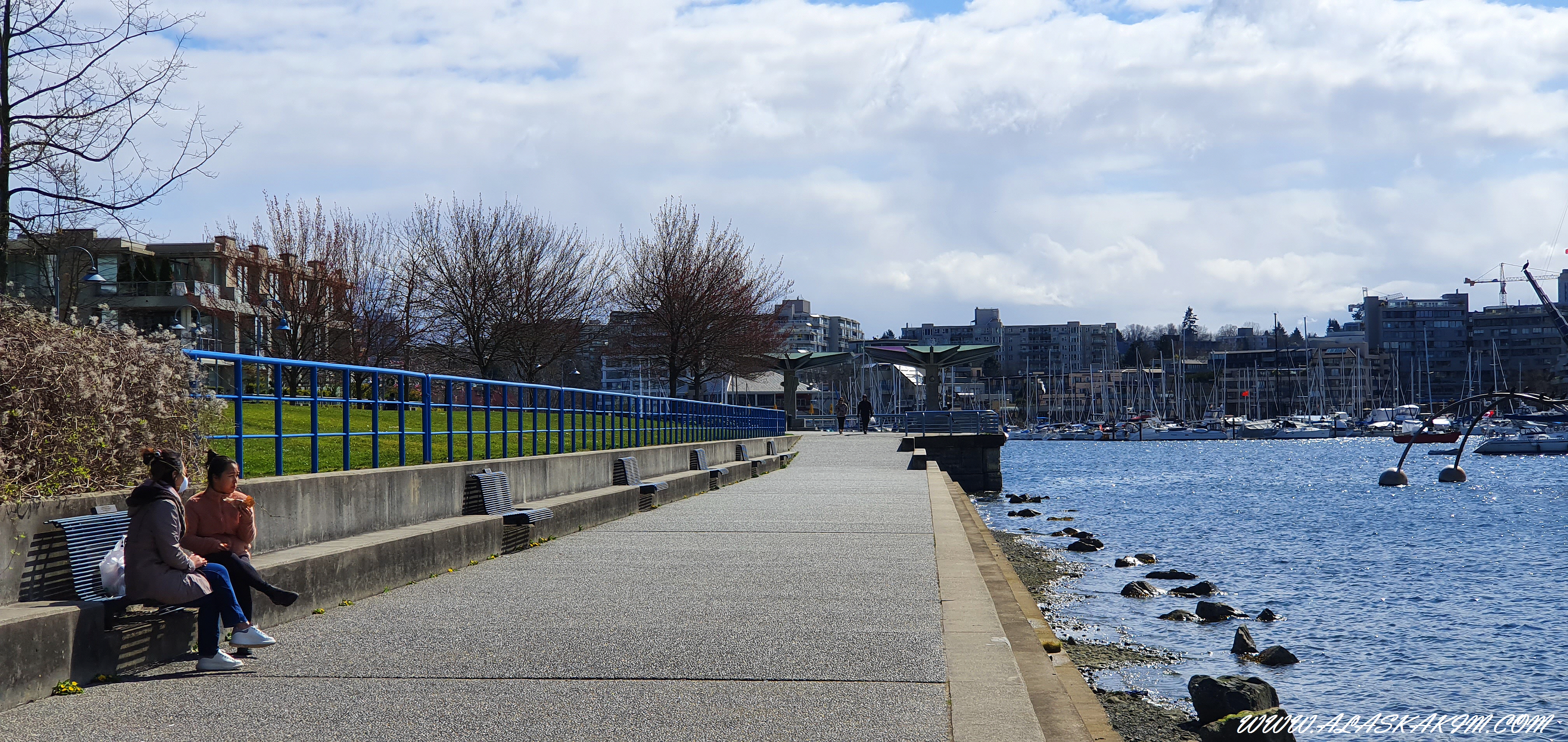 좌측에 밴치에서 한국 아가씨들이 피자를 사 와