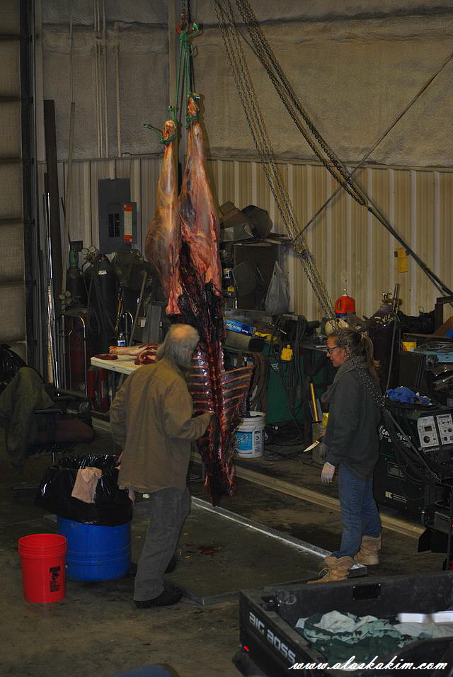 가을 사냥 시즌에 잡은 무스를 손질하는 장면을 소개