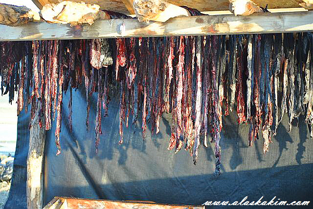 저 고기는 말리면 바로 육포가 되는데 물개 기름에 찍어서