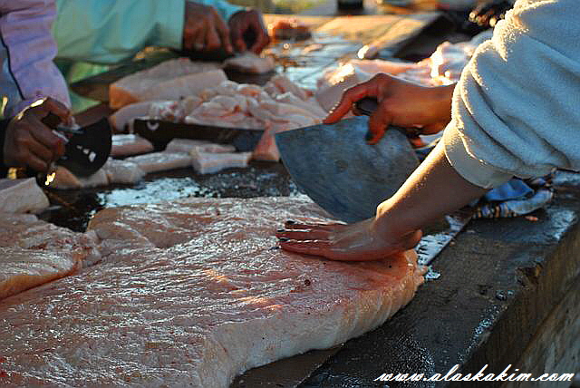 원주민 마을에는 바닷가에 거의 이렇게 Fish Camp 가 있어 어획한 연어를 비롯해