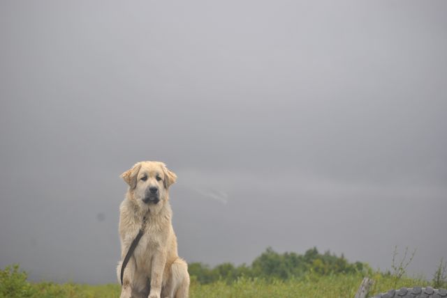 차에 올라가 포즈를 취해주는 견공.
