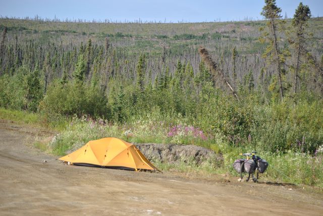 피곤에 지쳐 길 옆에 텐트를 치고 잠들어 있었습니다.