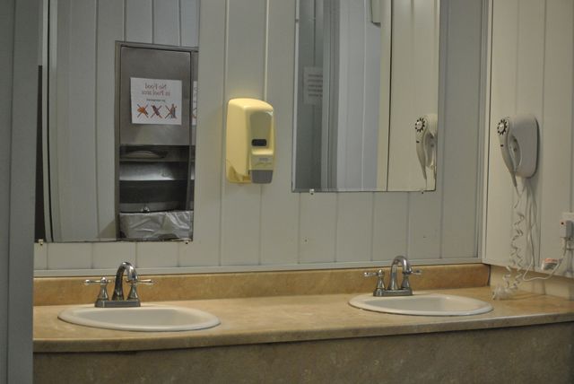 탈의실 세면대와 드라기기. 동전을 넣어야 작동이 됩니다.