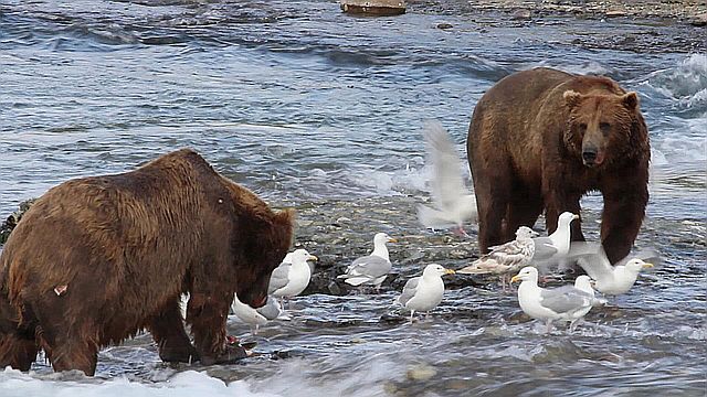Brown bear들이 연어를 사냥하는 모습은 TV 나