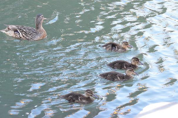 줄 맞춰 다른 낚시꾼한테 가는 청둥오리 가족