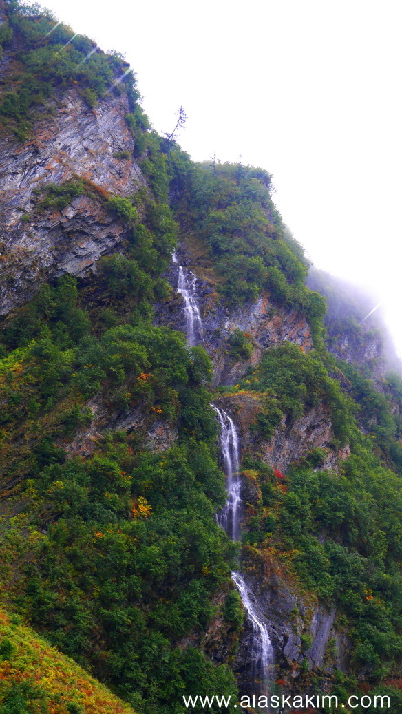 단풍이 절벽 위를 오르다 멈춘 것 같습니다.
