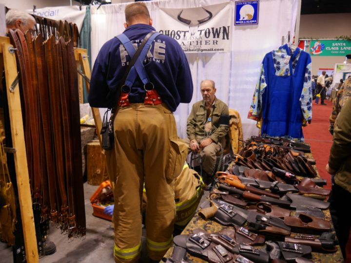 알래스칸의 필수품인 칼인데, 종류가 아주 다양합니다.