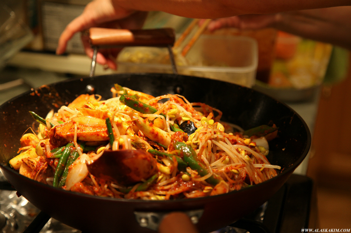 다양한 해산물과 함께 콩나물을 넣고 양념 고추장을
