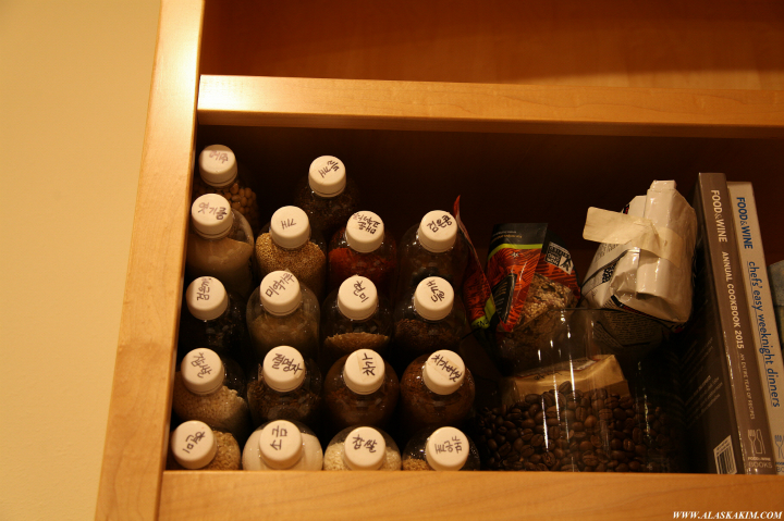 다양한 향신료와 조미료를 병에 담아 저렇게 진열을 해놓아