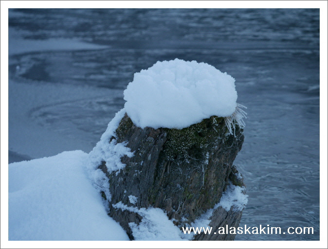 한 발 두발 다가가니, 아직 채 얼지 않은 관계로 발이 쑥 빠지네요.