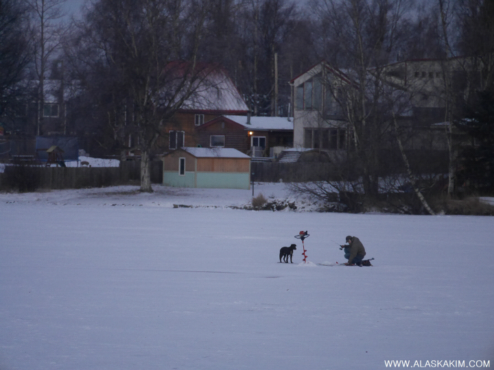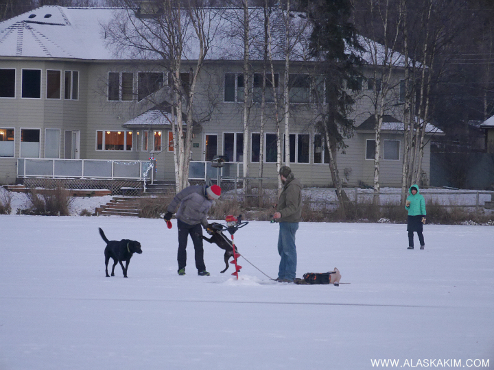 알래스카 " 얼음낚시와 강아지 "