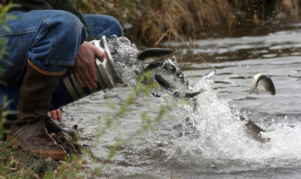 매년 알래스카 Fish & Game에서는 많은 치어를 방류하고 있습니다.