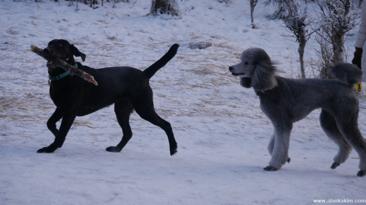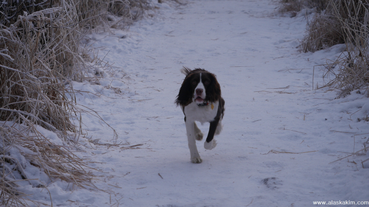 공을 던지면, 눈꽃 숲으로 들어가 물고 오는 영리한 개랍니다.