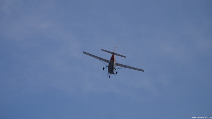 어디선가 나타난 경비행기가 머리 위를 선회합니다.