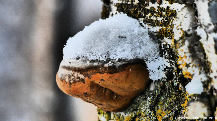상황버섯 위에 소복이 쌓인 눈이 탐스럽습니다.