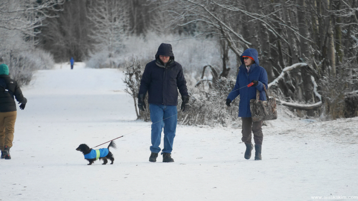 애견과 함께 하는 눈길 산책 풍경은 늘 평화롭기만 합니다.