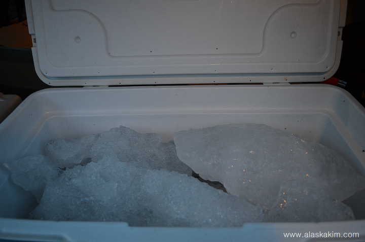 늑대 물고기를 잡아서 빙하의 유빙을 넣어 가져왔는데 , 아직도 다 녹지 않고